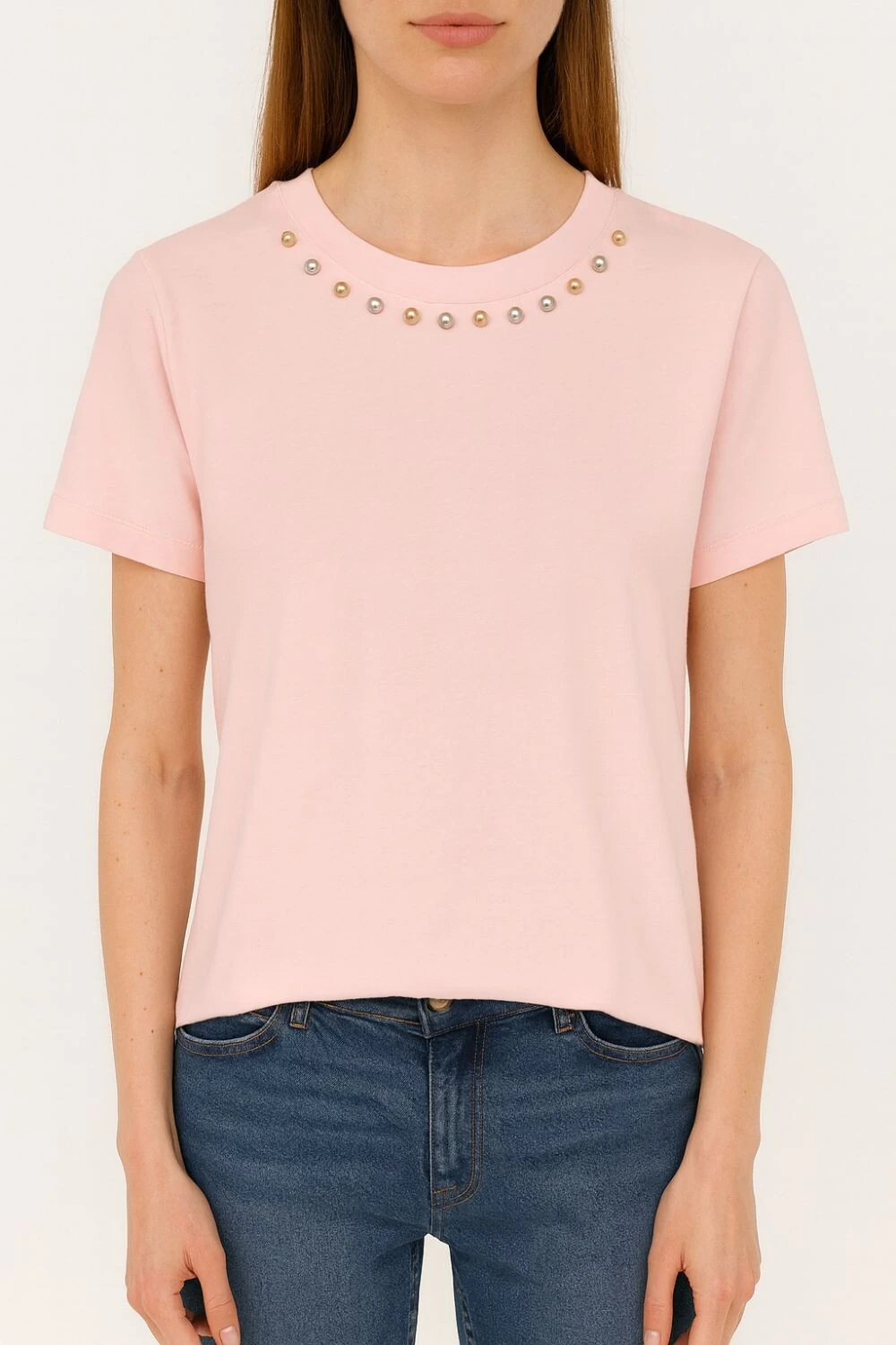 T-shirt feminina com aplicações no decote Kwi