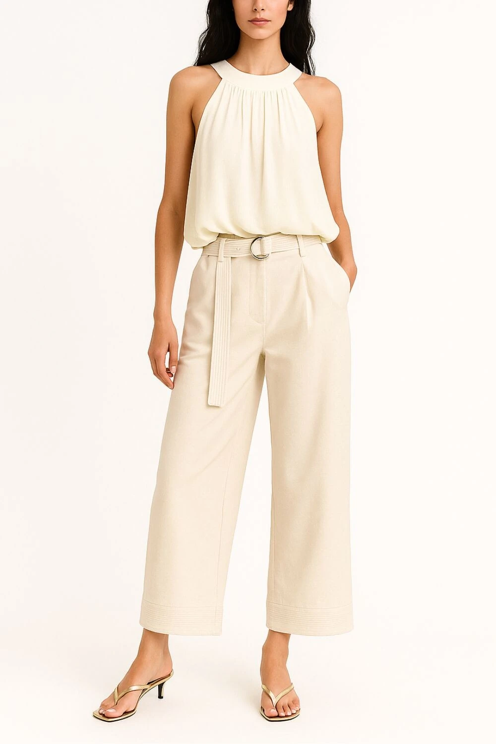 Calça de linho barra pespontada Kwi