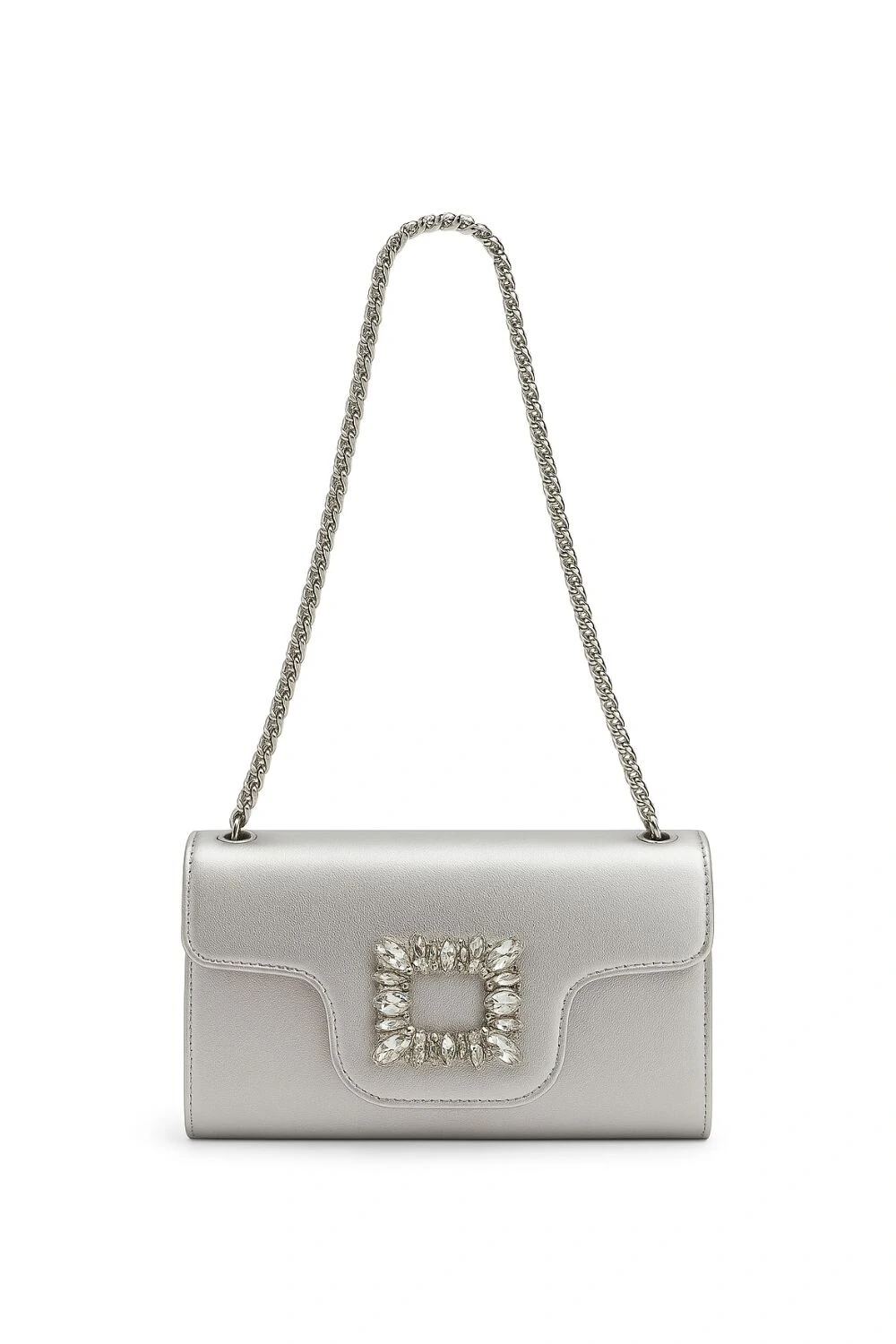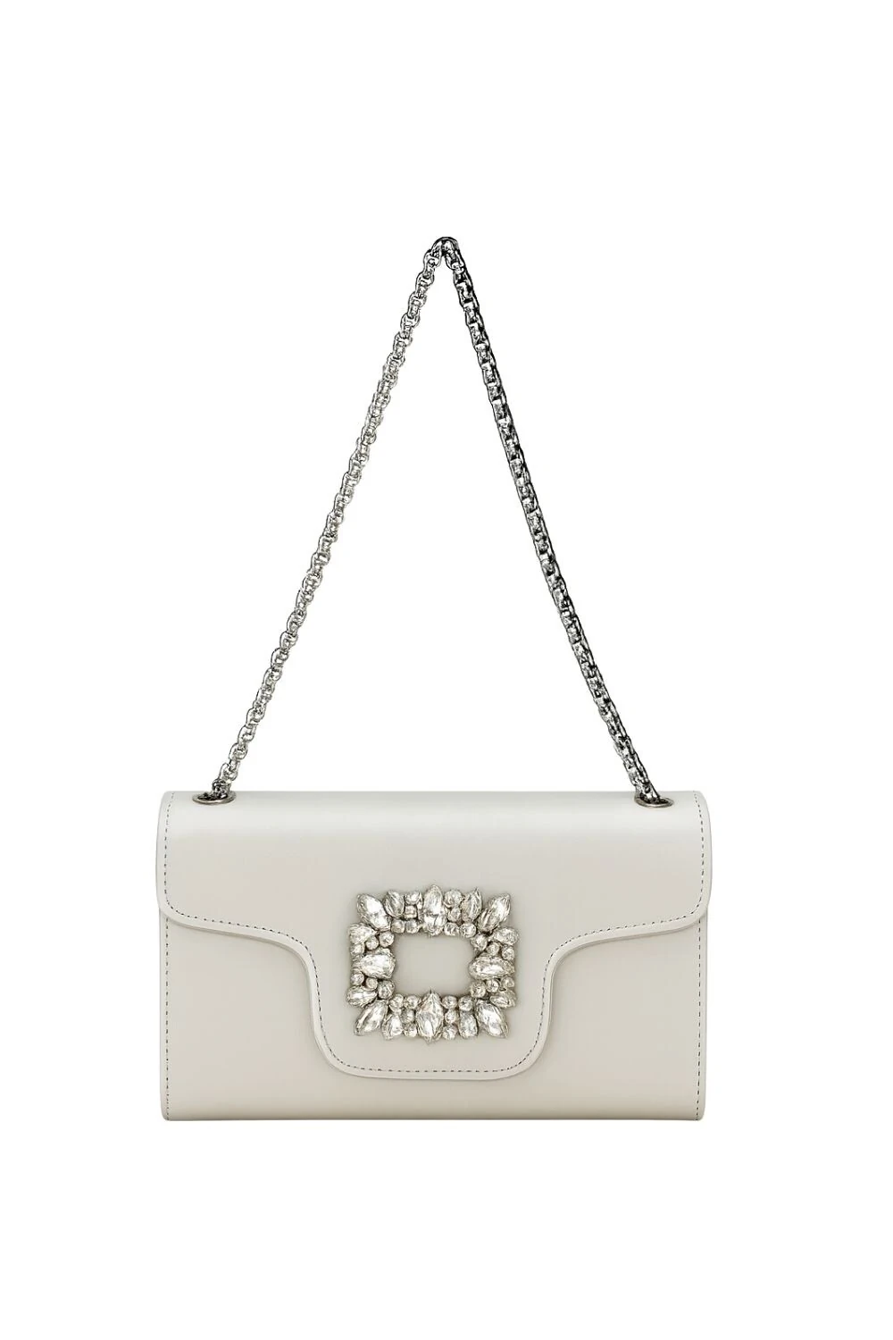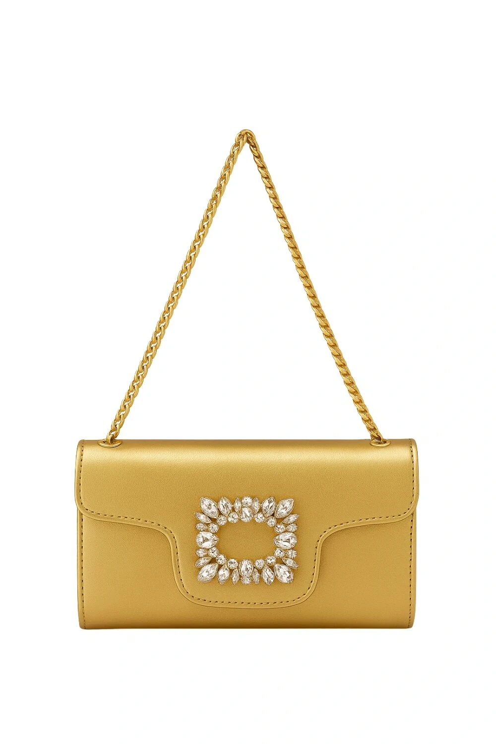 O destaque fica para a aplicação frontal de pedrarias em formato retangular, que adiciona brilho e exclusividade à peça.