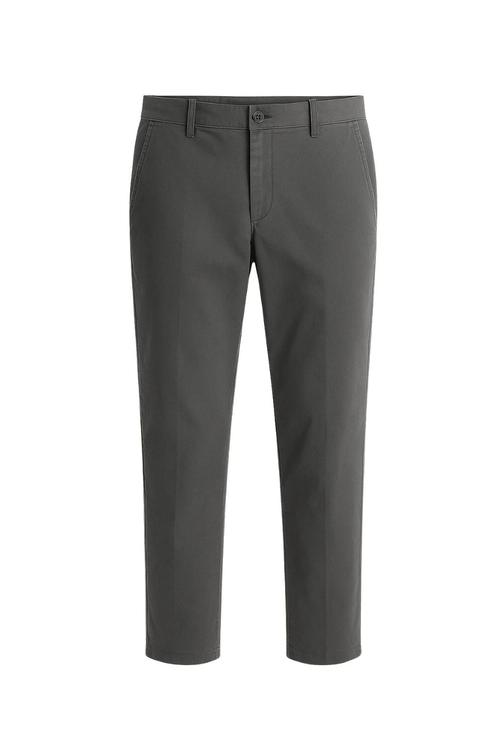 - Cintura com passantes para cinto e fechamento por botão e zíper.