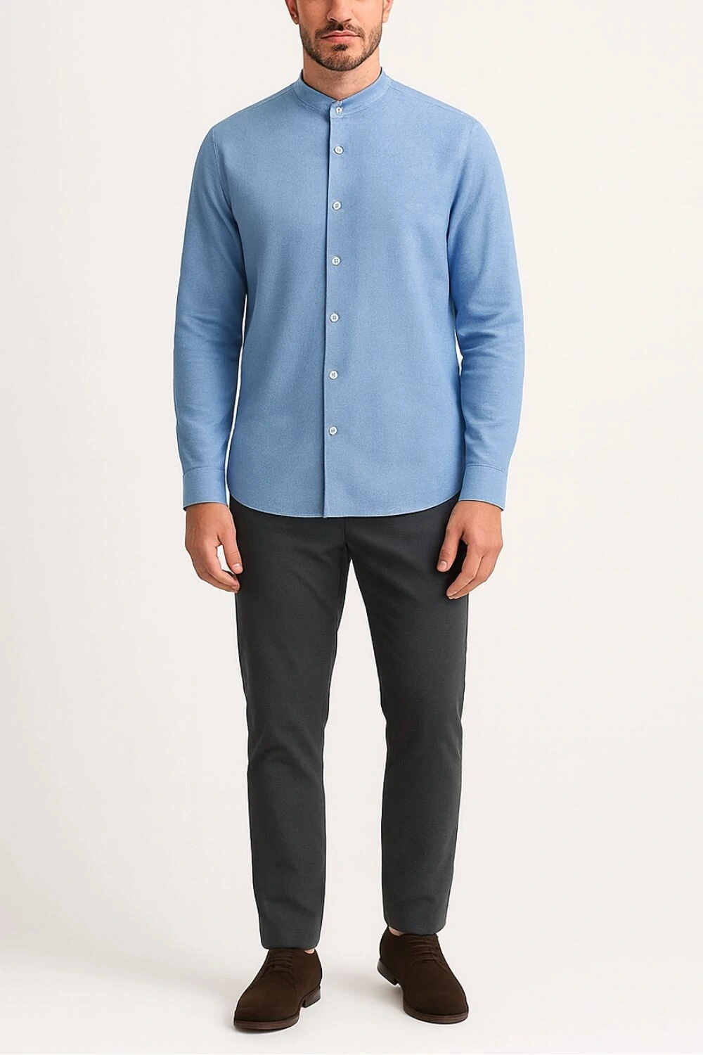 - A camisa social gola padre é a escolha ideal para quem busca sofisticação com um toque moderno.