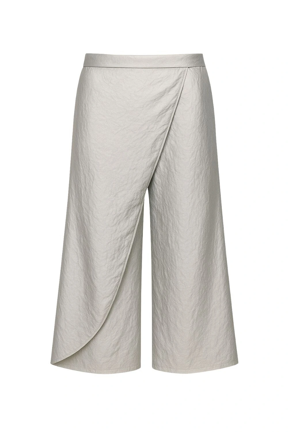 Elegante e contemporânea, a calça pantalona com transpasse frontal é a peça ideal para compor looks sofisticados e confortáveis. Confeccionada em tecido acetinado com leve textura, ela proporciona caimento fluido e movimento natural, valorizando a silhueta com delicadeza.