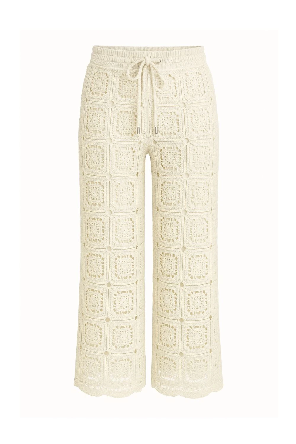 Calça em crochê frontal, que combina o trabalho artesanal dos granny squares na parte da frente com a praticidade do tecido liso na parte traseira. O contraste entre textura e fluidez traz equilíbrio entre estilo e conforto. O cós com elástico e cordão regulável oferece ajuste seguro, enquanto o forro interno garante cobertura adequada e conforto. Com modelagem reta e caimento leve, é uma peça ideal para looks de verão, resort e composições casuais sofisticadas.