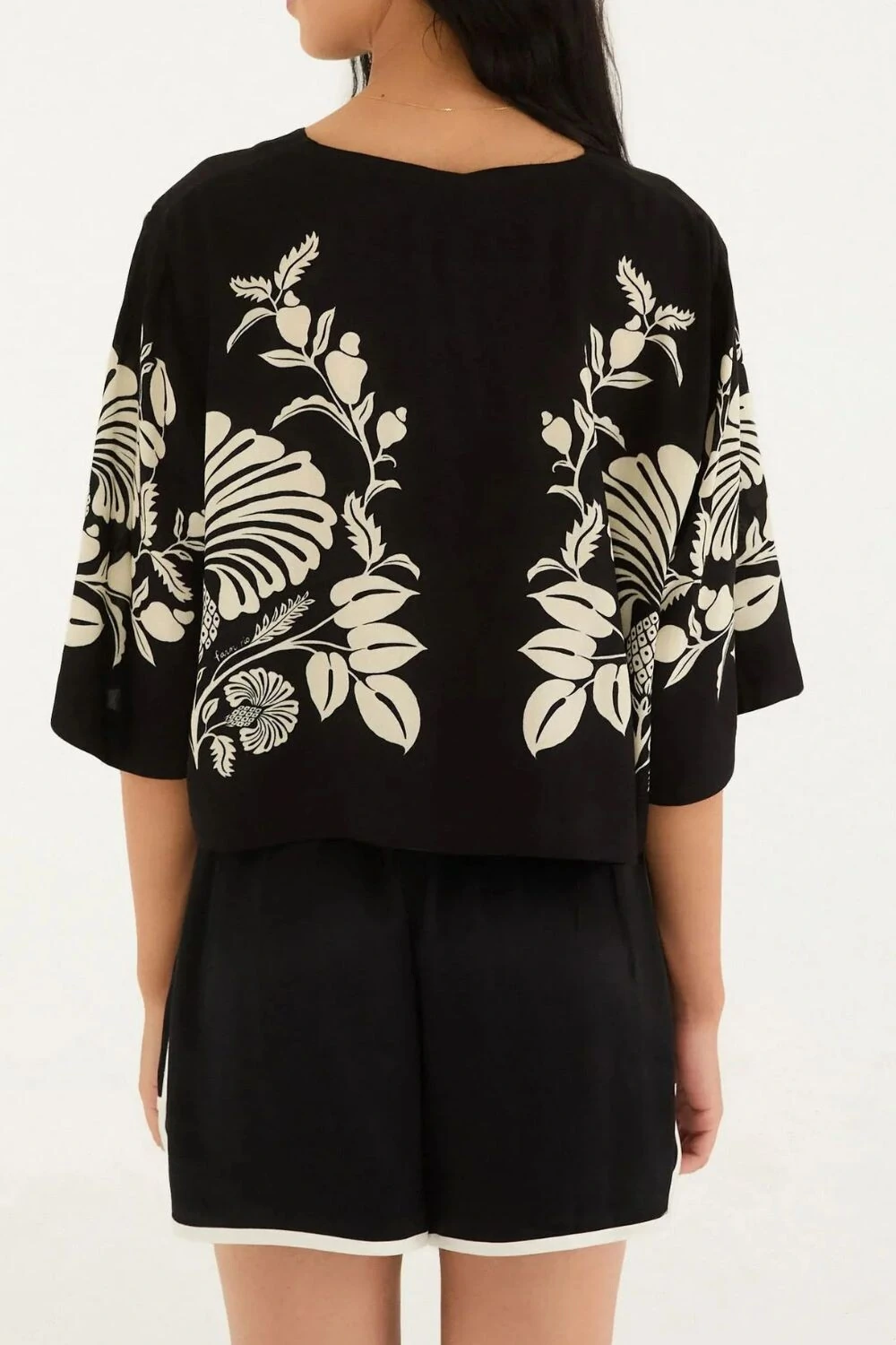 -50%Blusa manga muscle em malha com aplicação de flores Kwi