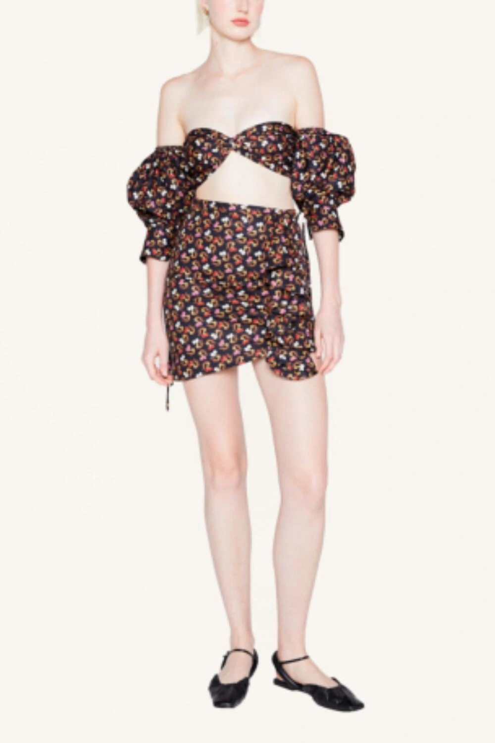-50%Blusa manga muscle em malha com aplicação de flores Kwi