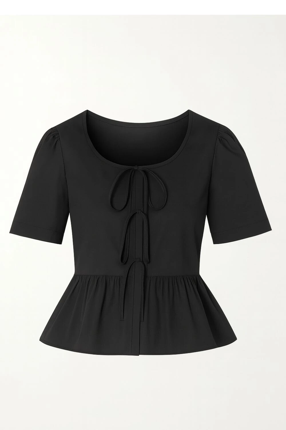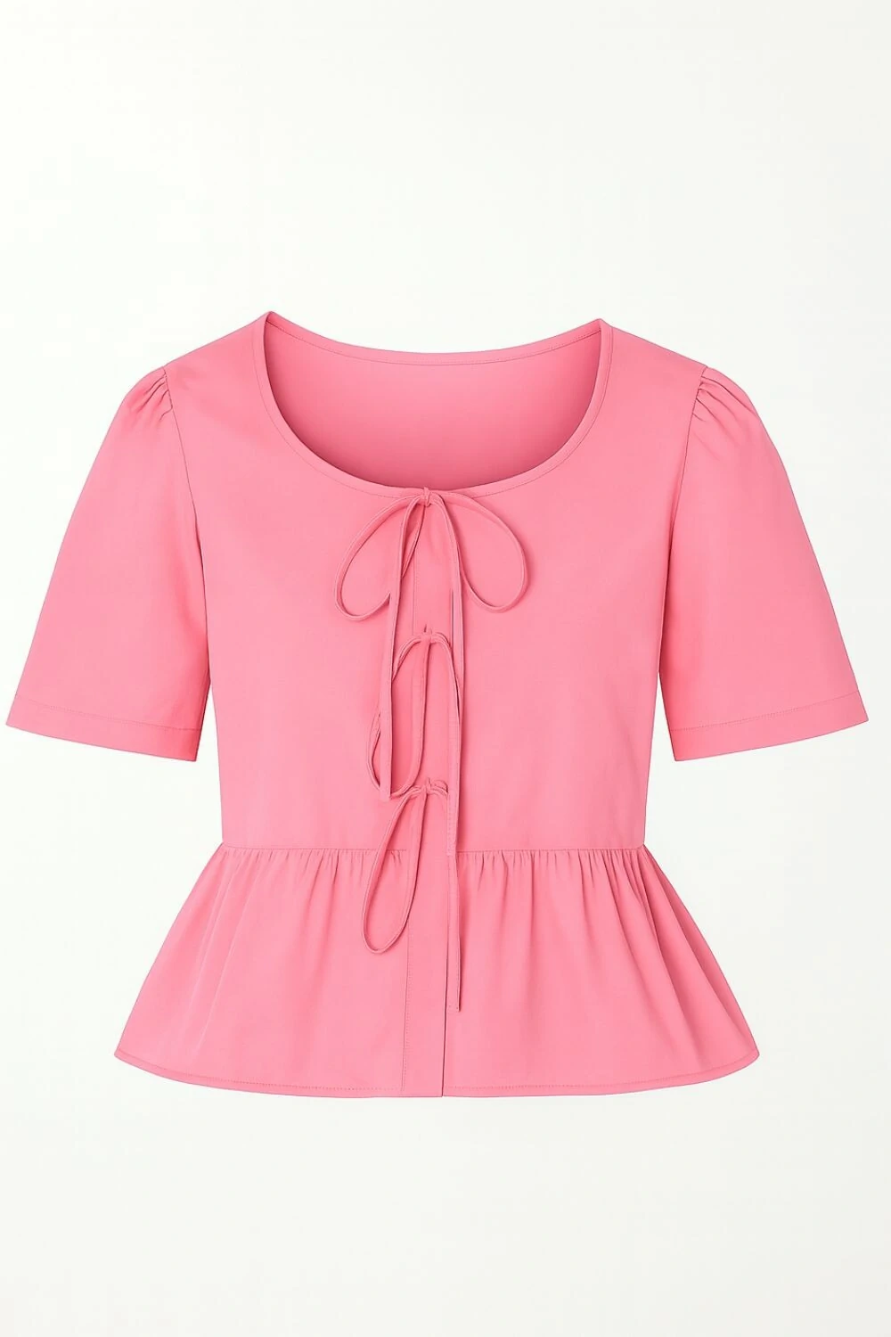 - Mangas curtas com leve franzido