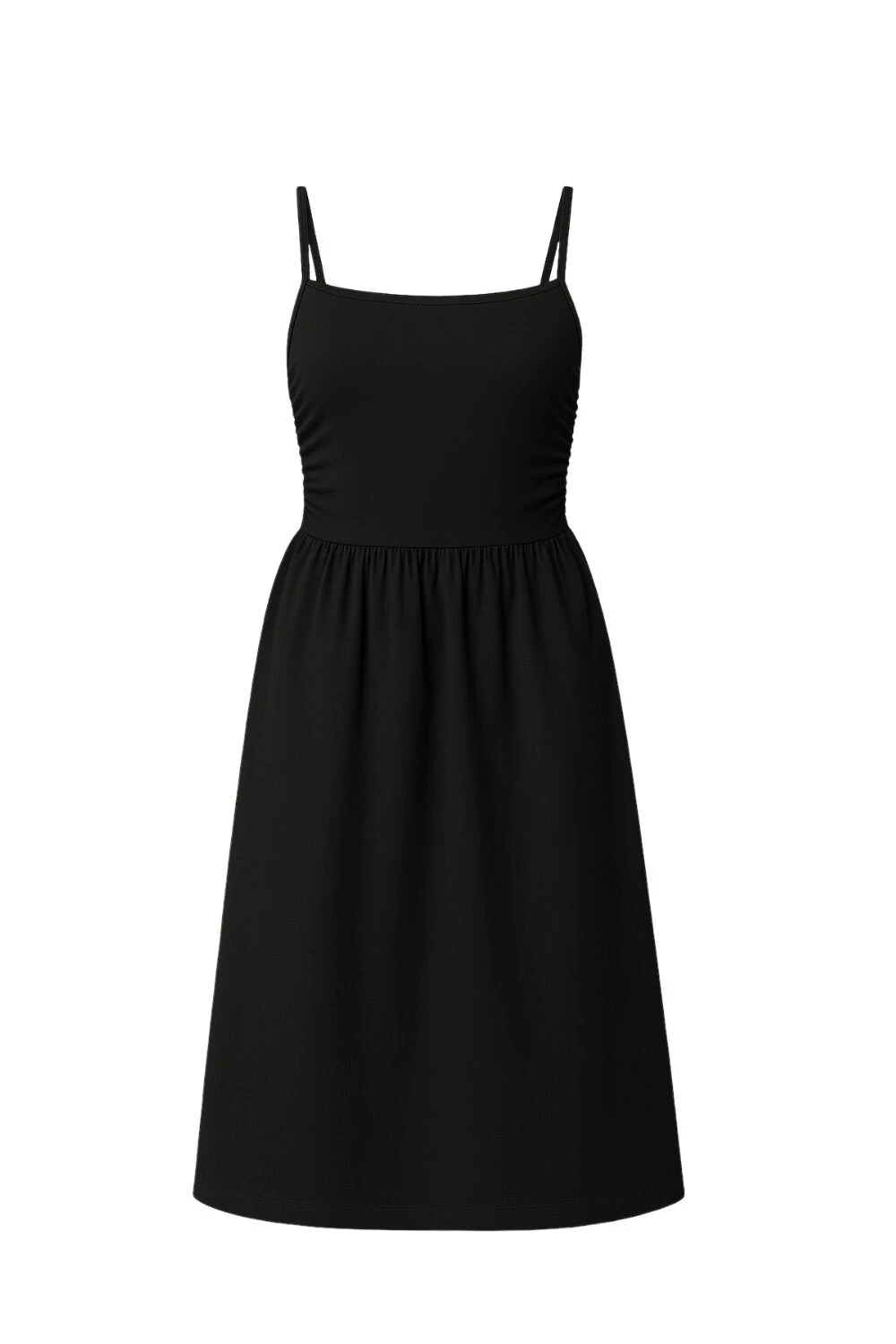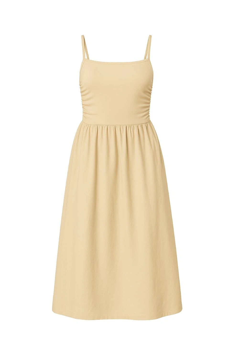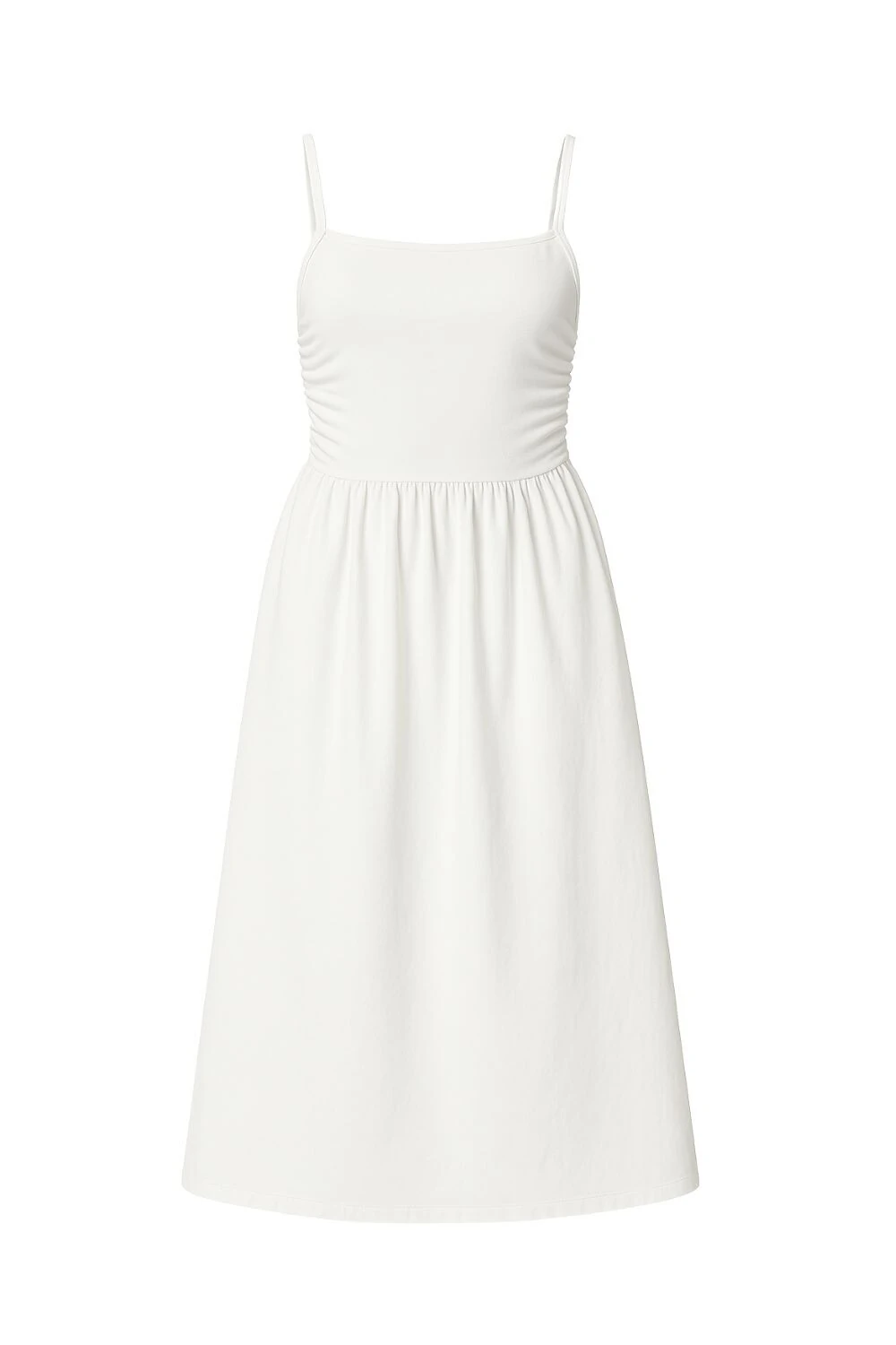 Vestido feminino midi confeccionado em combinação de malha e tricoline, unindo conforto e elegância. A parte superior, em malha leve e ajustável, valoriza o corpo com caimento natural, enquanto a saia em tricoline traz volume sutil e movimento fluido. O modelo possui alças finas e detalhe drapeado lateral que adiciona um toque moderno e delicado à peça.