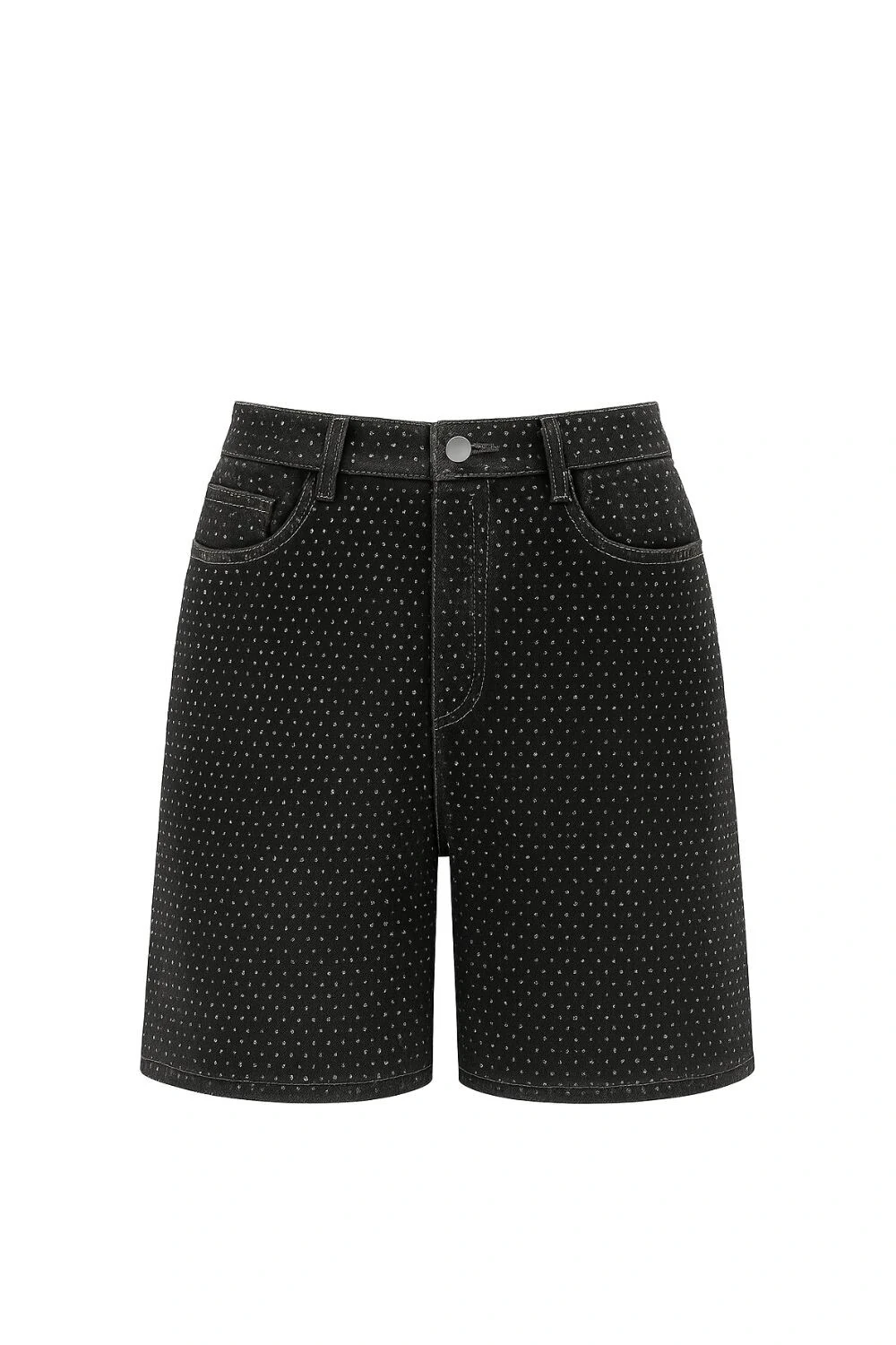 - Bermuda jeans com aplicação de strass em toda a superfície