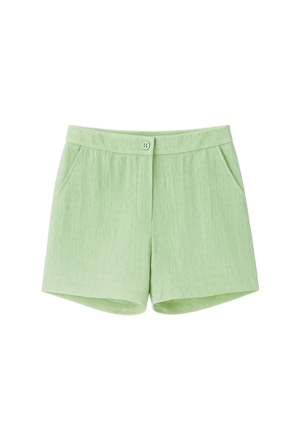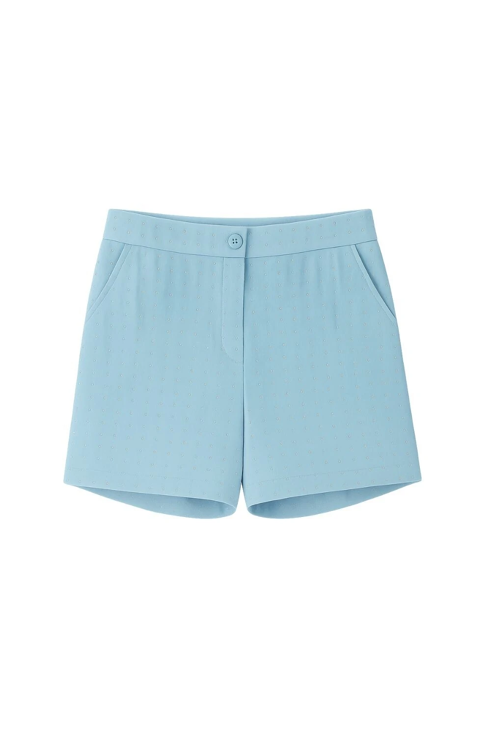 O short em tecido leve traz um toque sofisticado ao look com sua aplicação de micro pedrinhas brilhosas por toda a peça.