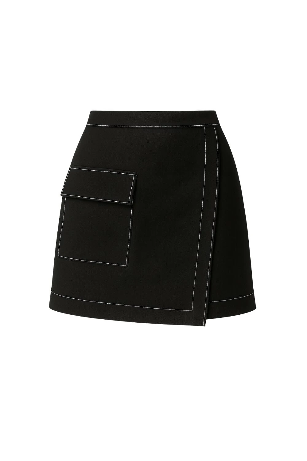 Short saia feminino leve e estruturado, com modelagem moderna estilo envelope e acabamento de alta qualidade. Possui bolso frontal aplicado com aba, detalhe que adiciona charme e praticidade ao visual. As costuras aparentes em tom contrastante valorizam o design e destacam o recorte frontal. A peça oferece caimento impecável, cintura média bem estruturada e comprimento curto, ideal para composições casuais ou mais arrumadas.