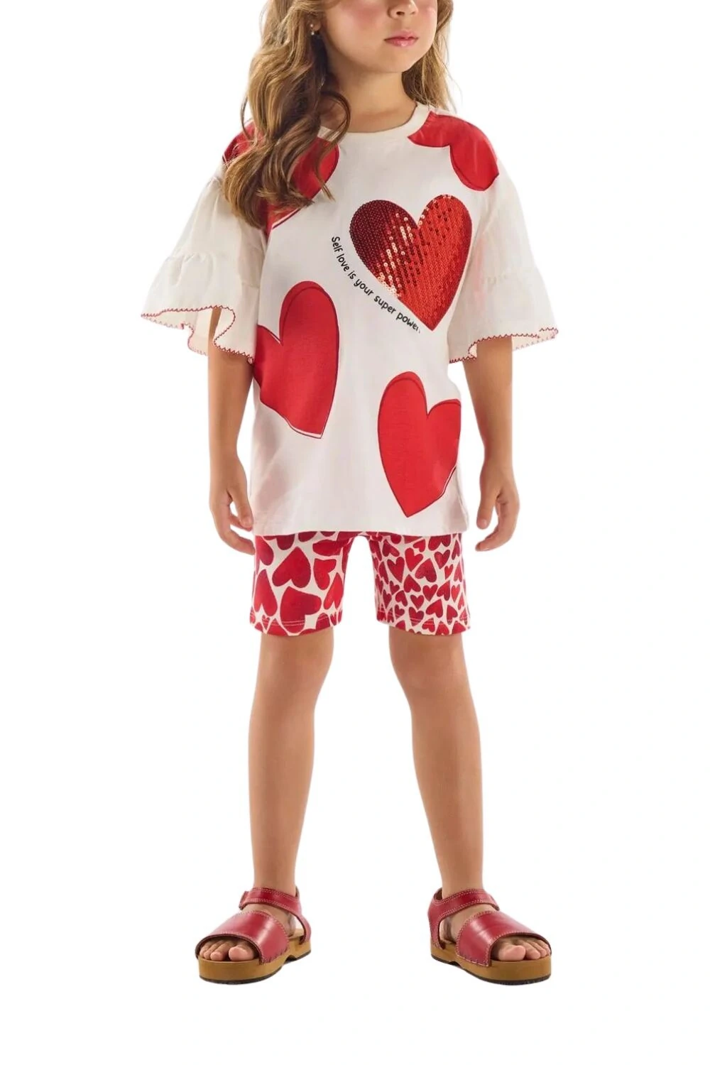 Conjunto blusa em meia malha e bermuda ciclista de corações Up Baby