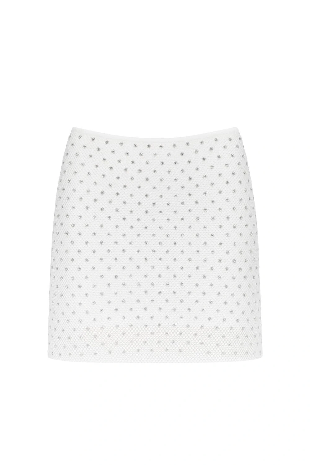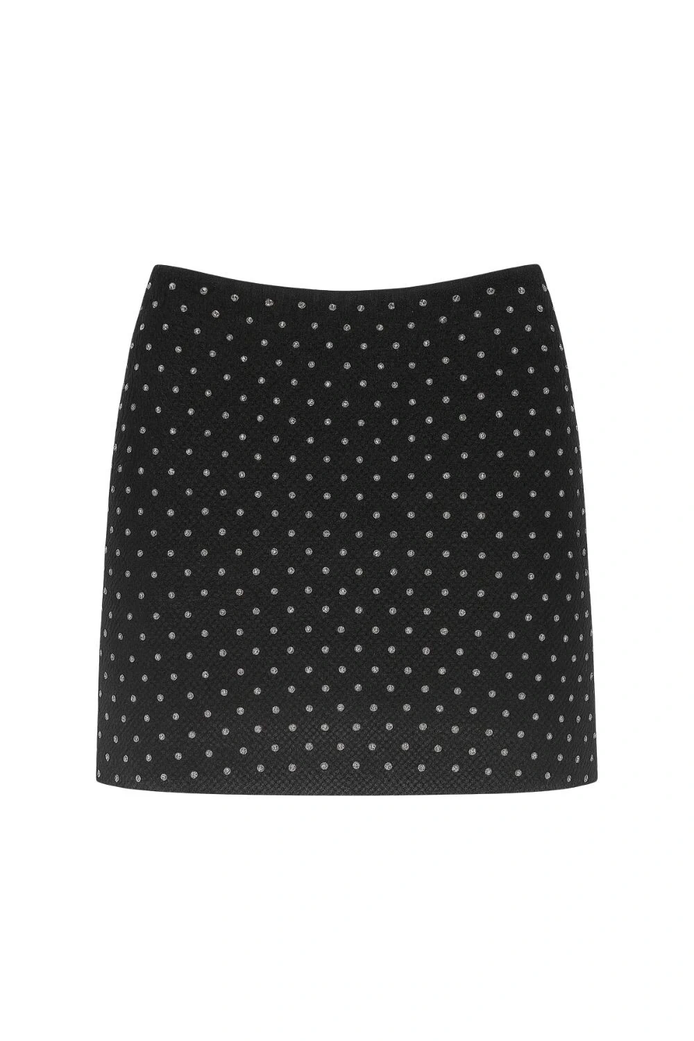 Saia curta feminina confeccionada em tecido telado com forro interno, garantindo conforto e leve transparência controlada. O destaque fica por conta das aplicações de pedrinhas de brilho distribuídas por toda a peça, que proporcionam um visual sofisticado e moderno. A modelagem é reta, valorizando a silhueta com elegância, perfeita para compor produções noturnas ou looks de festa com um toque de glamour.