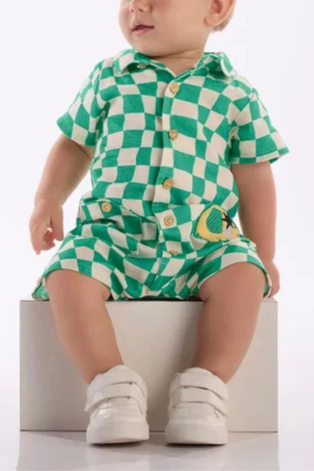 -50%Conjunto camiseta malha jardineira molecotton Três E Já