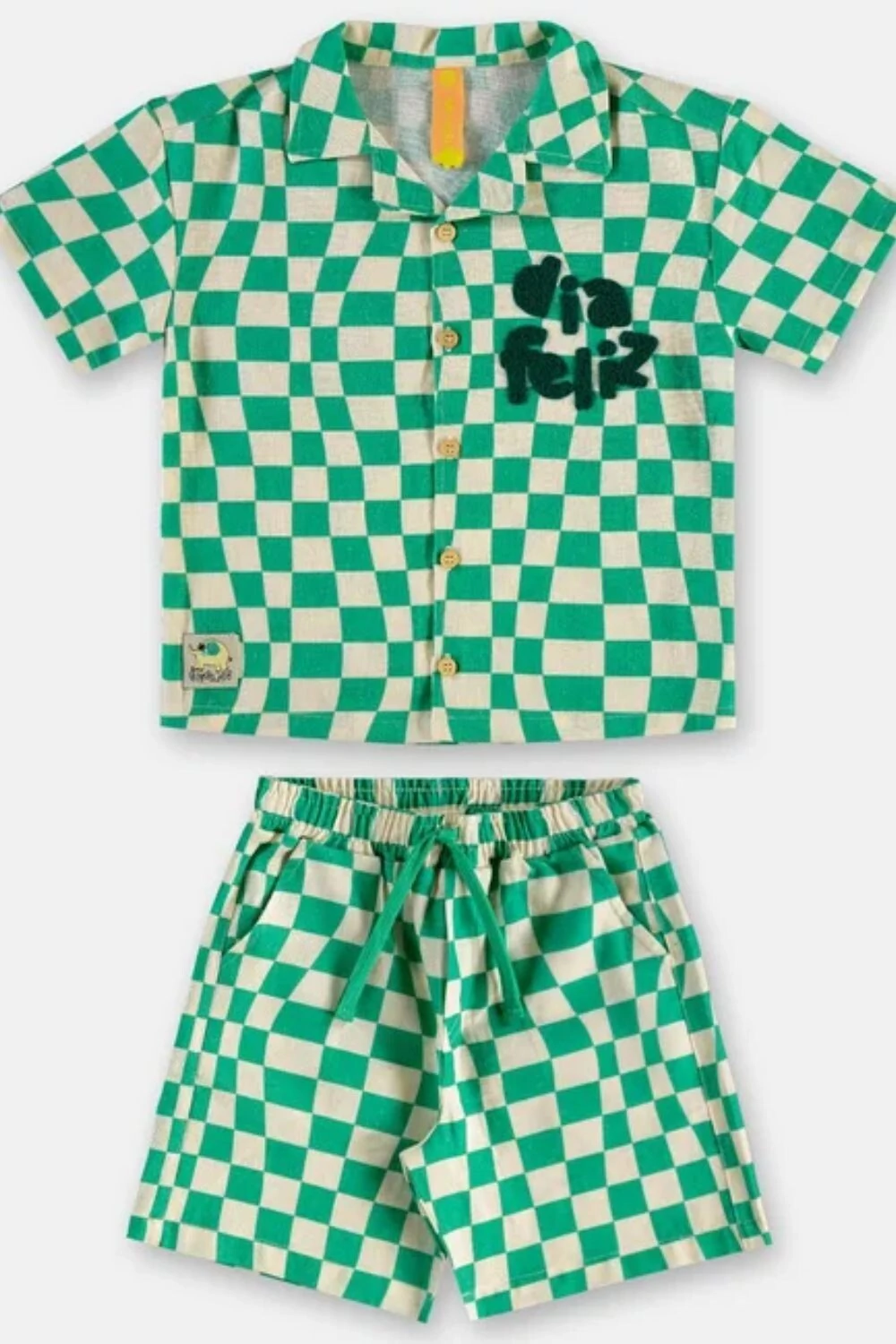 -62%Conjunto camisa e bermuda em viscolinho Três E Já