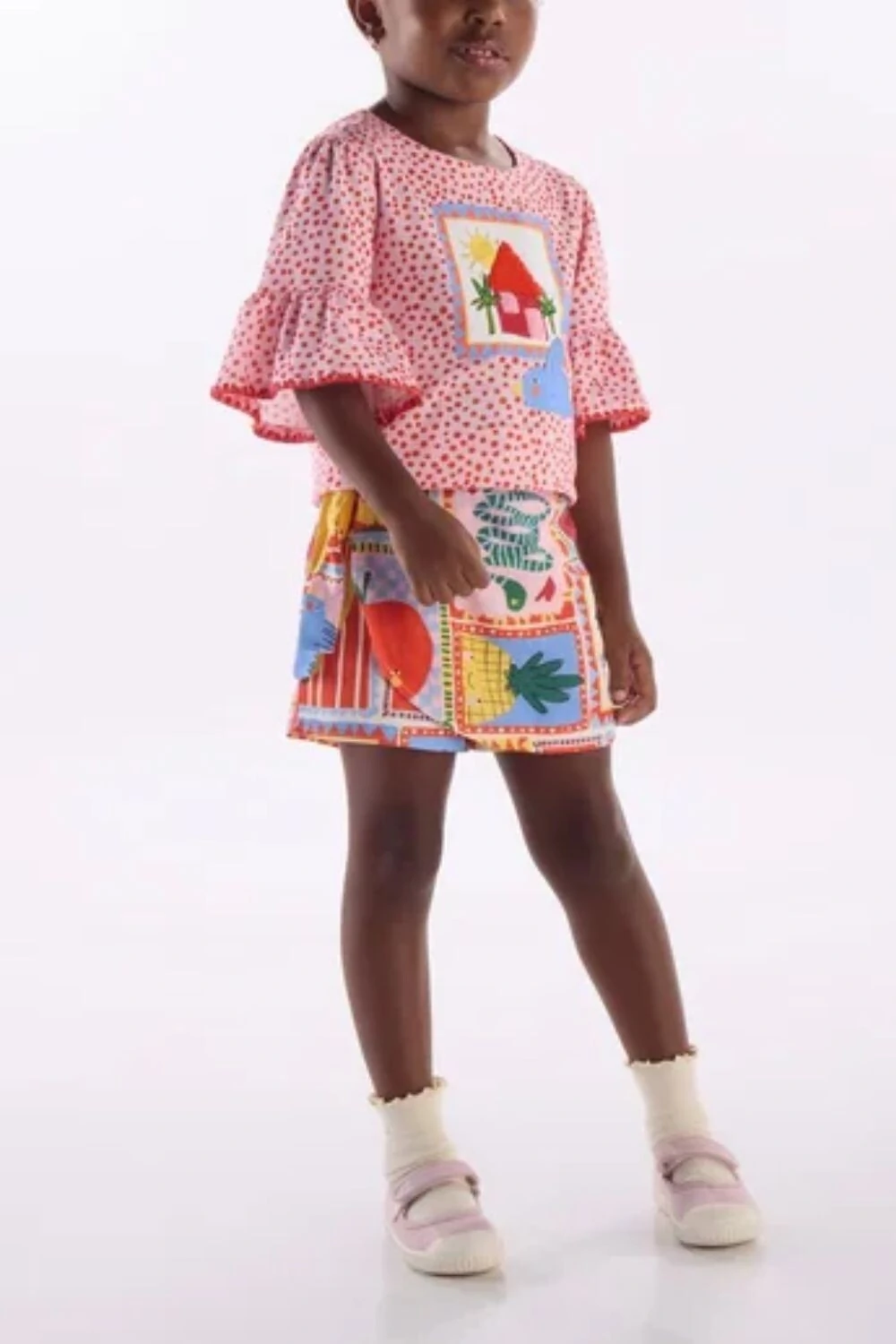 -62%Conjunto blusa e bermuda em viscolinho Três E Já