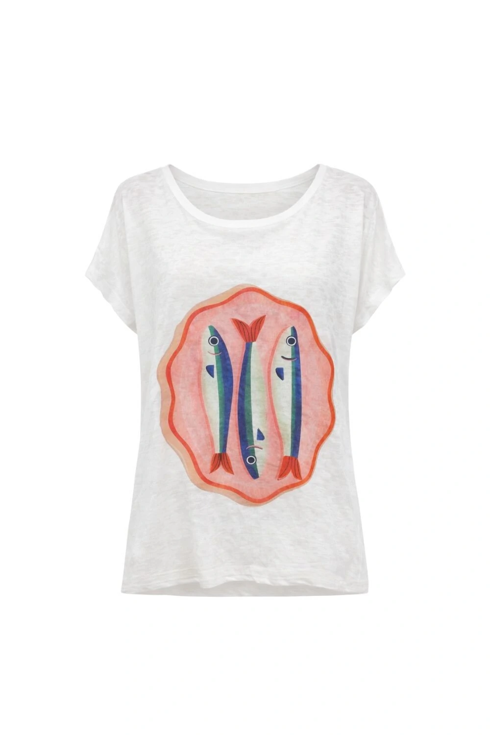 A modelagem é reta e confortável, com caimento solto, mangas curtas e gola ampla, ideal para o dia a dia.