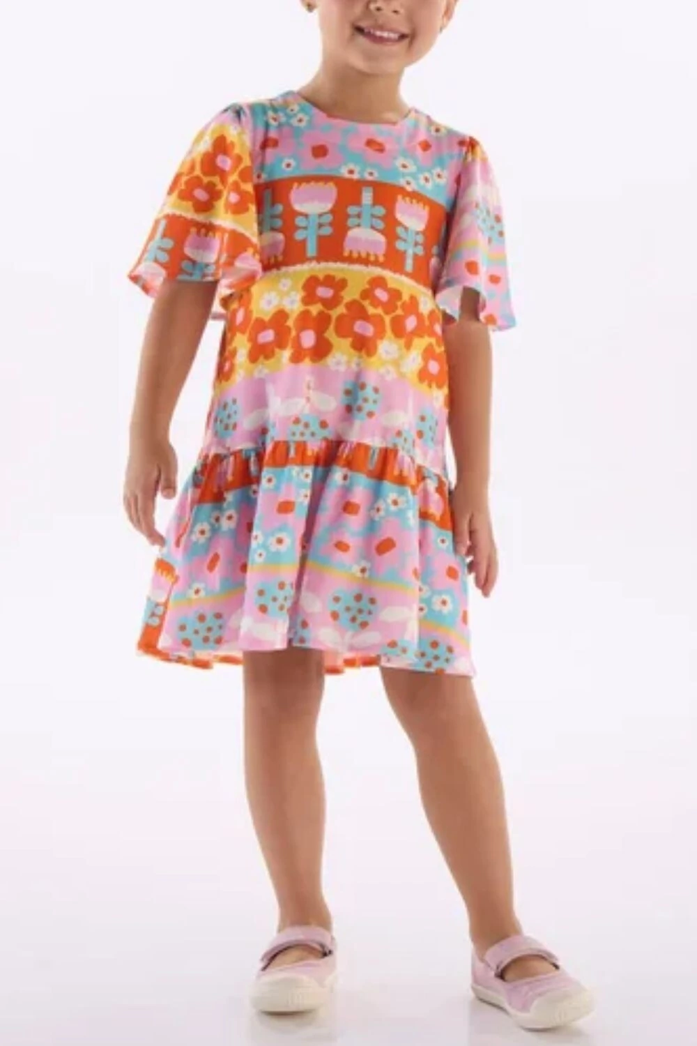 Vestido manga curta em malha digital Três e Já