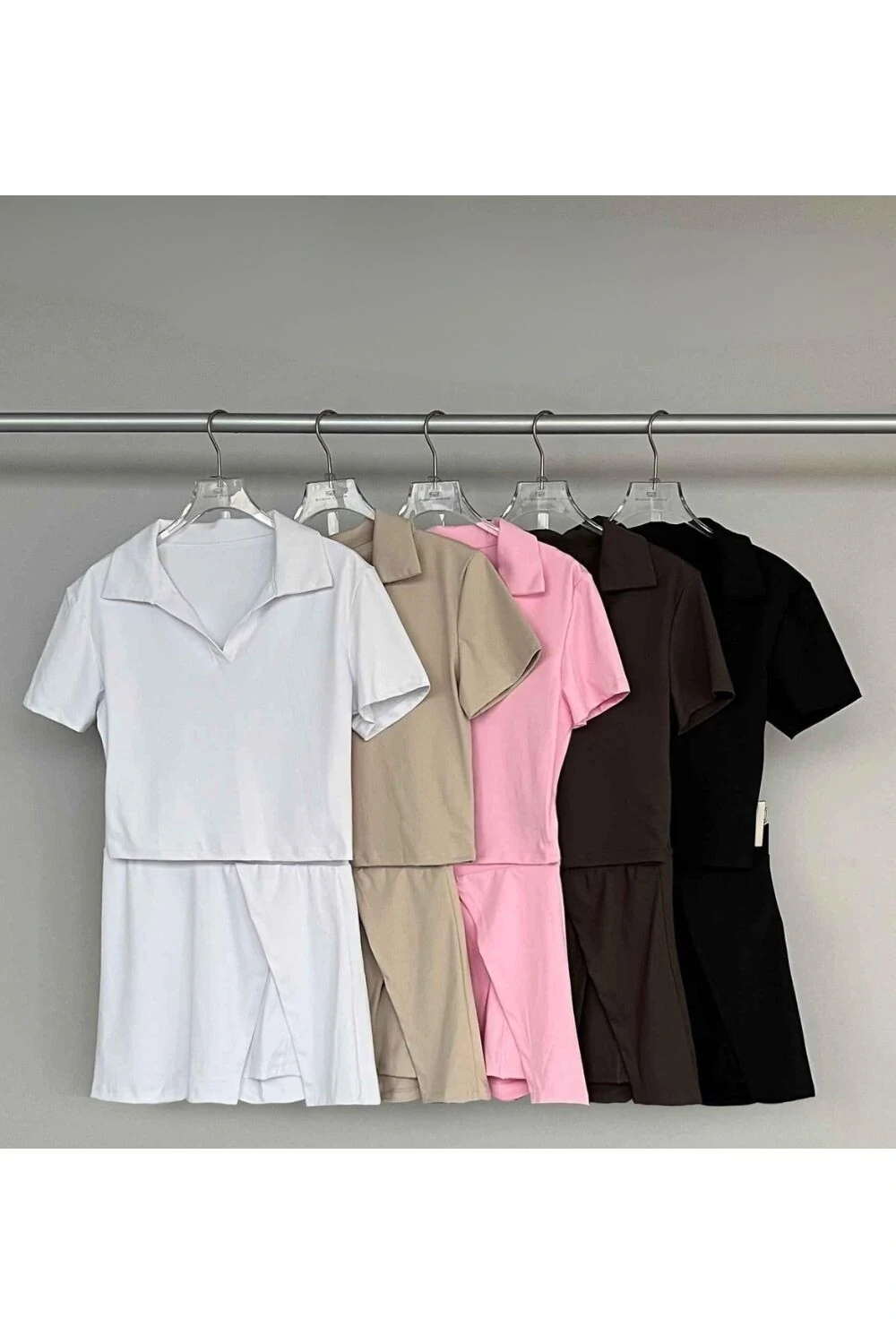 - Modelo short saia com sobreposição frontal