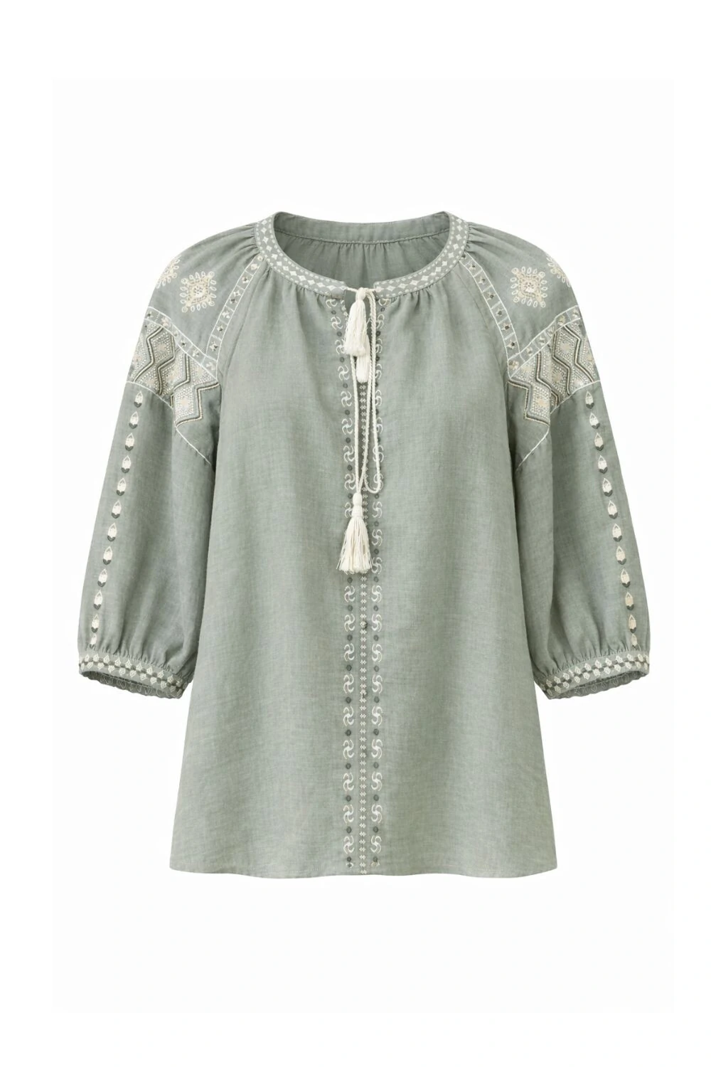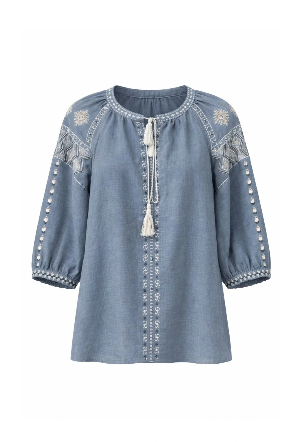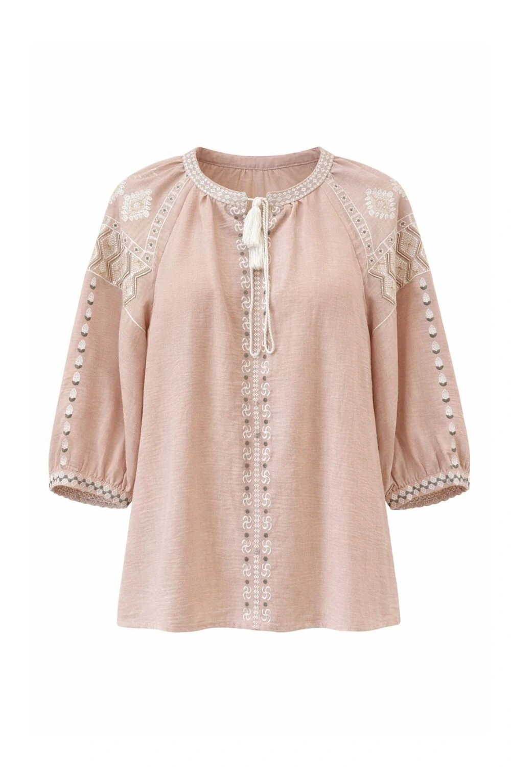 Blusa feminina confeccionada em Algodão, com toque leve e caimento confortável. Possui decote arredondado com amarração frontal e detalhes bordados que trazem um visual delicado e atemporal à peça. As mangas curtas com leve volume e acabamento bordado adicionam charme ao modelo, enquanto a modelagem soltinha garante liberdade de movimentos e bem-estar ao longo do dia.