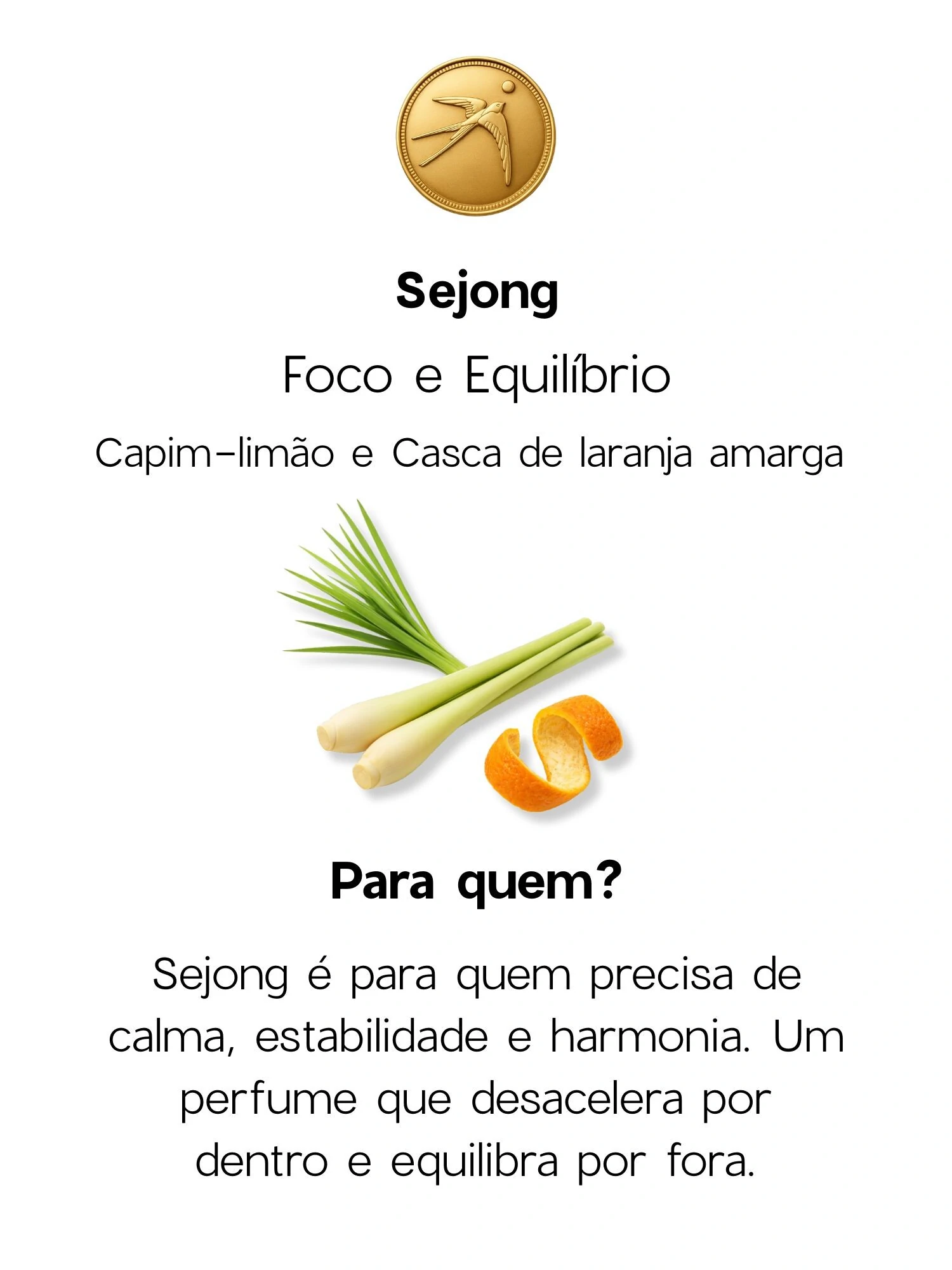 A fragrância inspirada nos saberes do Rei Sejong se concentra na noção de que a principal moeda de um ser humano são suas virtudes, contribuindo para o bem-estar através da calma e do equilíbrio.