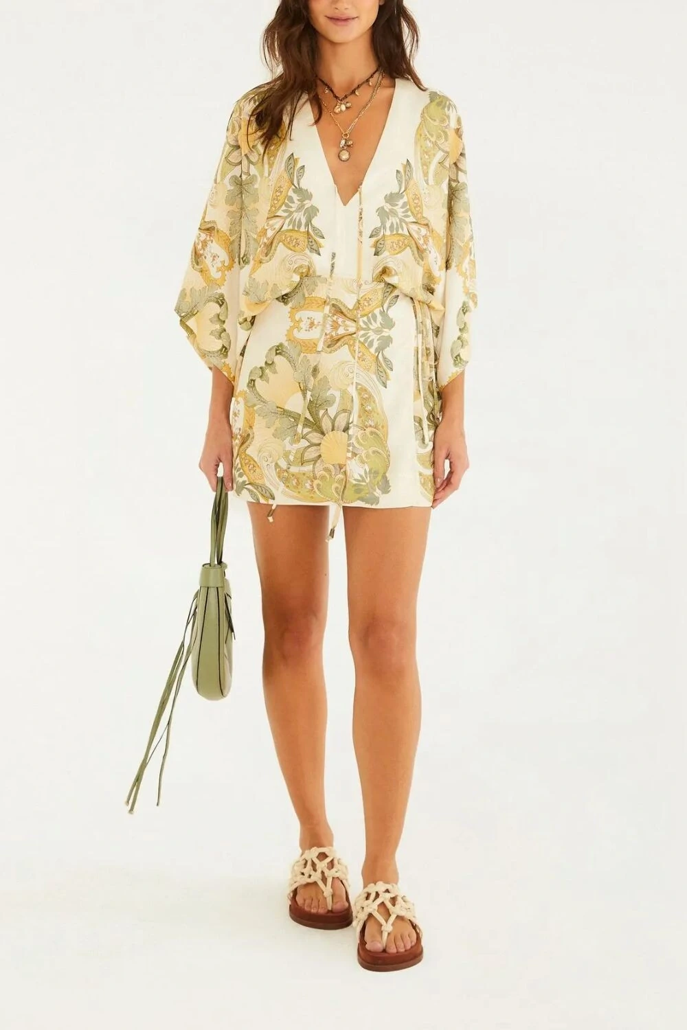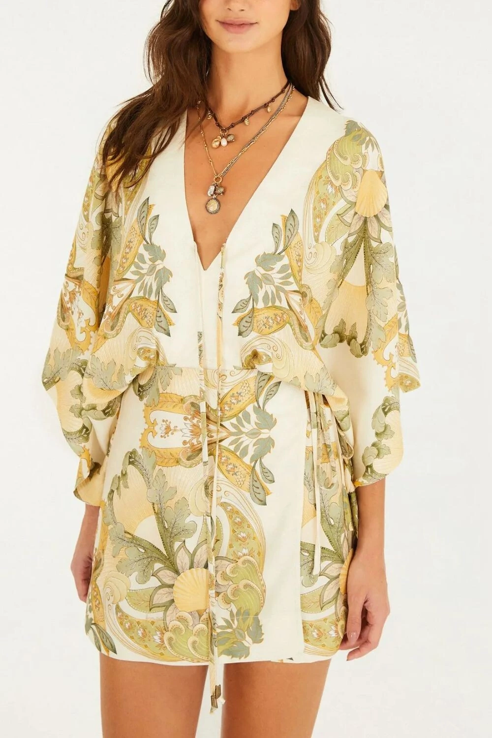 Vestido curto manga ourinho tropical Farm