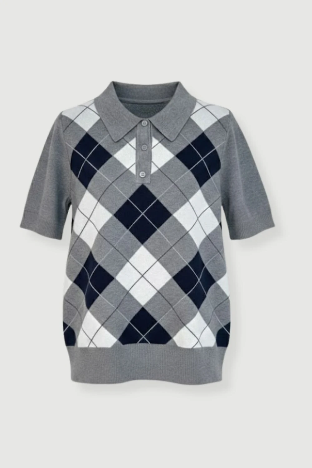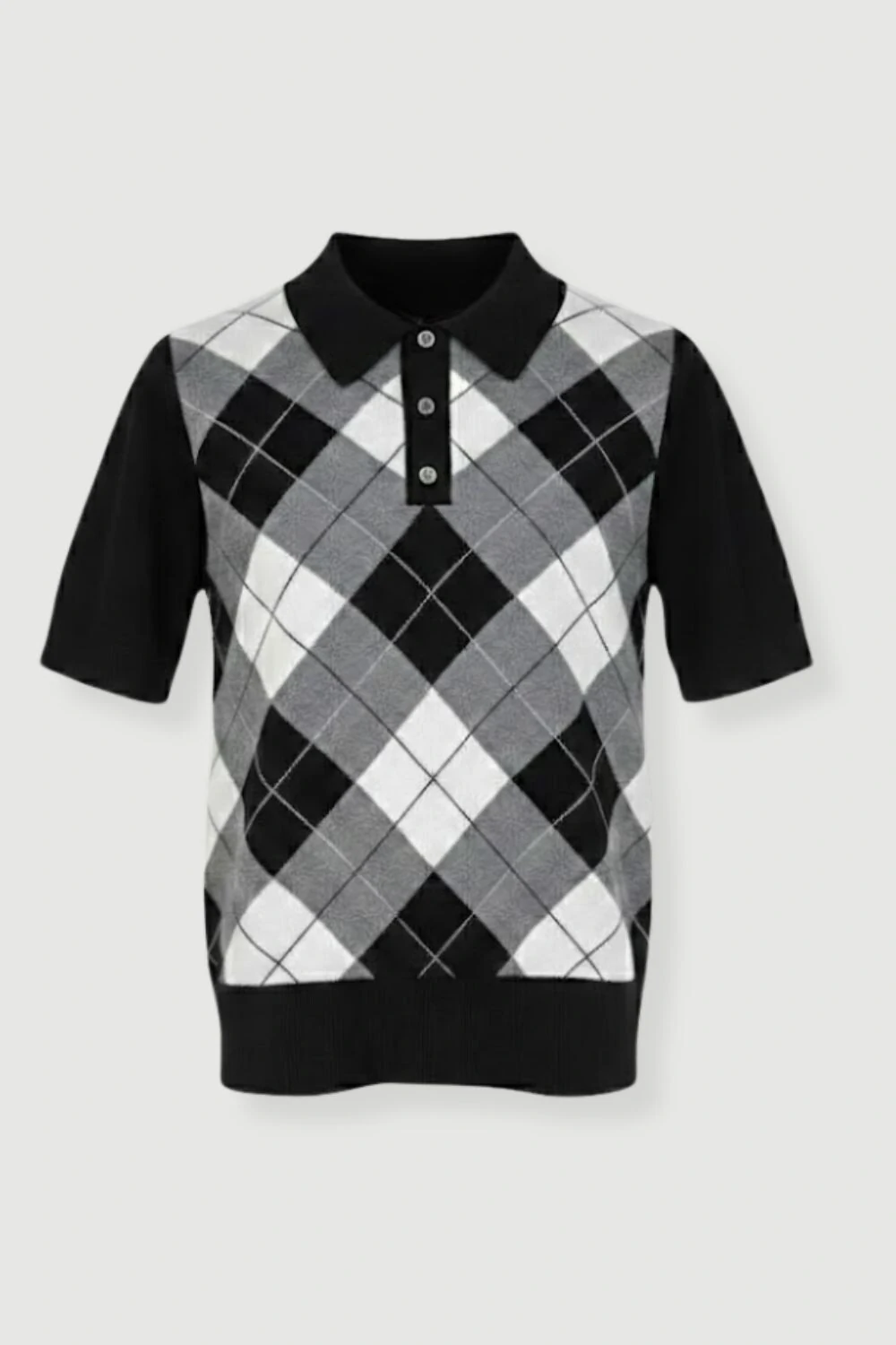 A blusa polo em tricot é a escolha perfeita para quem busca um visual clássico com personalidade. O destaque fica por conta da padronagem geométrica, que traz sofisticação e identidade à peça. Possui gola polo estruturada com abotoamento frontal e mangas curtas, garantindo um visual alinhado e versátil.